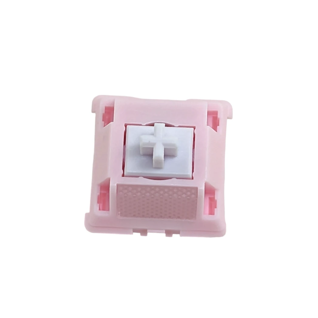 Pink Lotus is a linear switch comparable to popular the Morandi switch both of which are manufactured my Wuque Studio and use the same light diffuser which help disperse the RGB lights more evenly. Pink Lotus switches have 50g of actuation force and 60g of bottom out force which makes this a perfect switch for gaming and fast typists. This mechanical keyboard switch come pre lubed from the factory by WS Wuque but for keyboard enthusiast looking to make these switches shine, we recommend brush lubing with Krytox 205g0 and filming as well. We use our .15mm PC film which work well and gives this switch the thock they deserve.