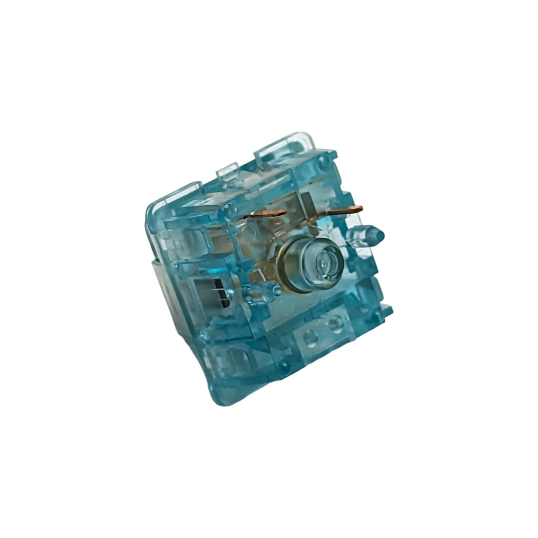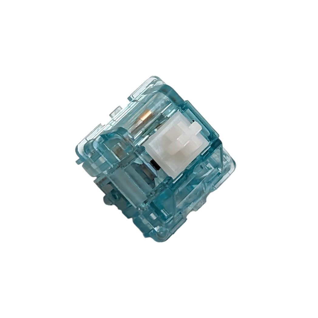 The Durock Shrimp silent tactile switches feature a unique clear turquoise top and bottom housing and are the perfect switch for those who love the Durock T1 switches but need something a little more quite for the office or shared space setting. Equipped with silicon dampeners, the Durock Shrimp’s are one of the best silent tactile switches around and great for PC gamers and for general heavy handed typists. These switches also come stock with a light factory lube.