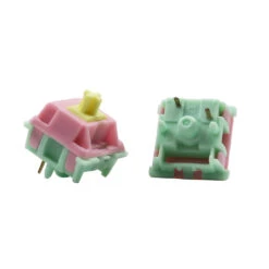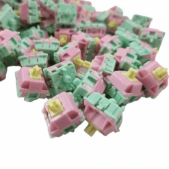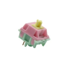Manufactured by Gateron, the Keyfirst Cream switch is both colorful and fun to press. With 4 millimeters of total travel and an operating force of 62 gf, it’s a bit on the bulkier side—but its self-lubricating stems make each keystroke a frictionless experience. Performance aside, the Cream switch earns its name from the playful Pantone colors it features: Cream Green in the lower case, Cream Pink in the upper case, and Cream Yellow in the stem. With this unique color combo, it’s begging to be shown off on a low-profile keyboard with a floating key design